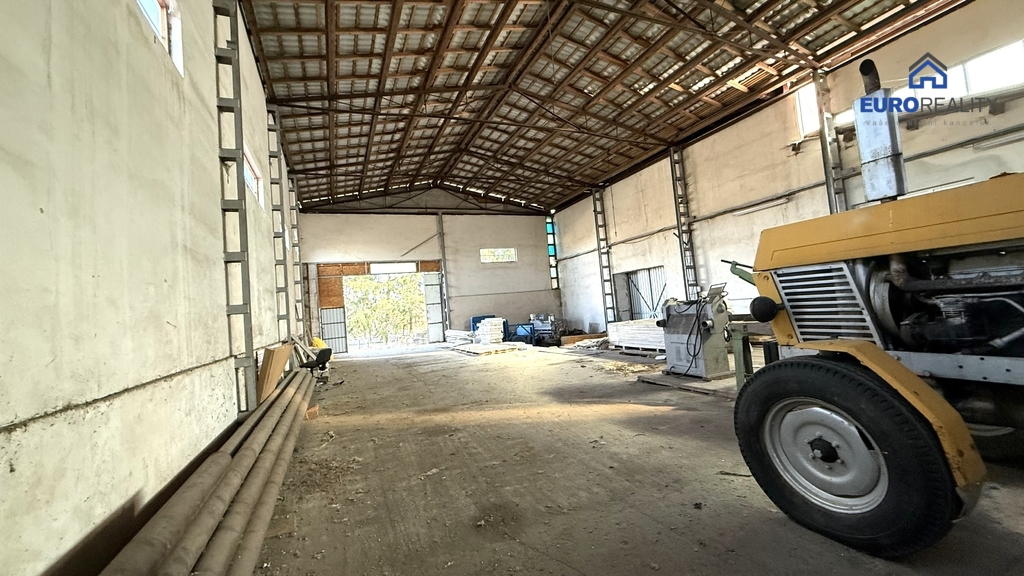 Prodej výrobního a skladovacího areálu v sousedství letiště Erpužice. Prodává se areál o celkové ploše 10 996m2 a několik výrobních a skladovacích hal o výměře 1 400m2 o výšce 8,5m a druhá je nižší 7m s vraty 4,5m, garáž 26m2.