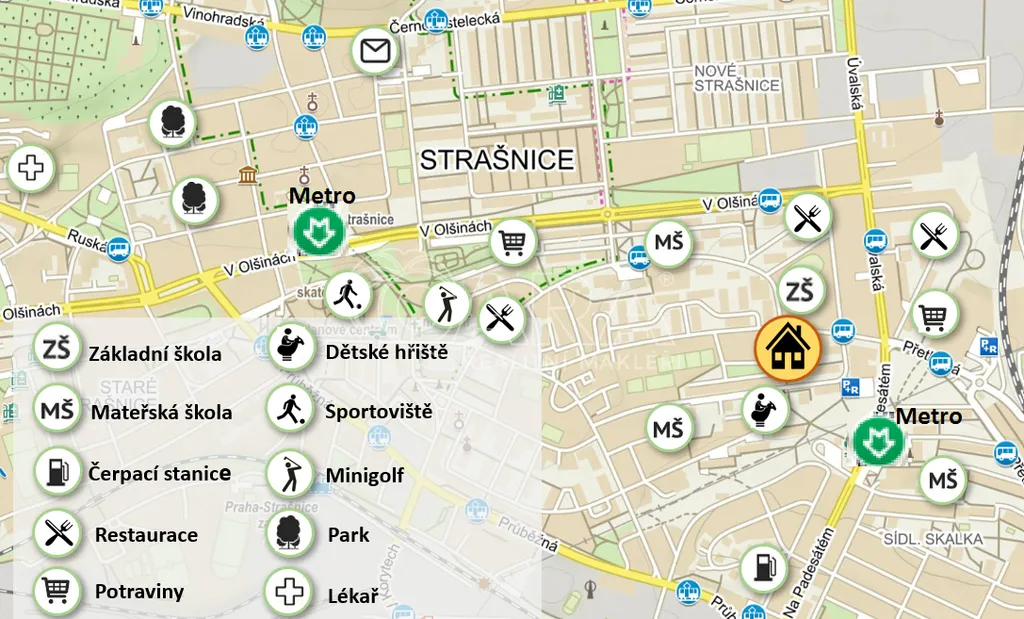 ✔️ Jedná se o klidnou rezidenční čtvrť s výbornou dopravní dostupností a kompletní občanskou vybaveností. V okolí se nachází obchody, restaurace, sportoviště, školy, a také metro Skalka, vlakové nádraží a nákupní centrum Tesco Extra Skalka v docházkové vzdálenosti.