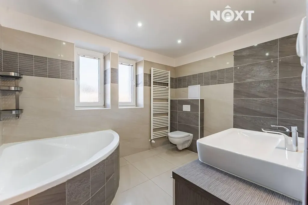 Vytápění a ohřev vody jsou řešeny dálkově. Velkým bonusem je prostorný sklep vhodný k uskladnění sezónních věcí a také možnost využití zahrady před domem, která je ideální například pro sušení prádla nebo pro relax na slunci.