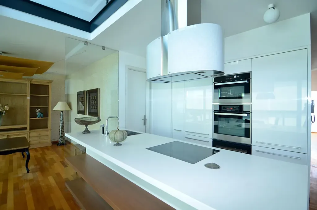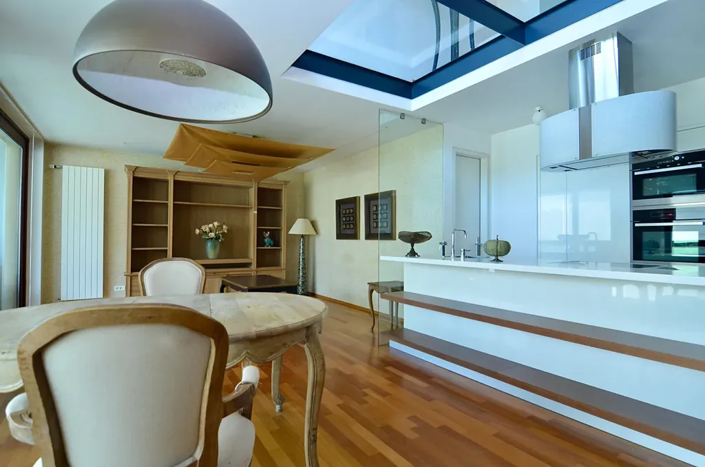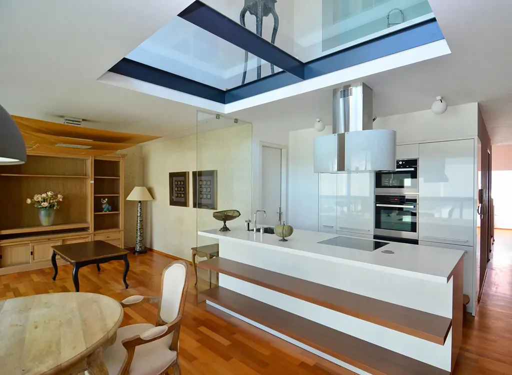 Vysoká kvalita interiéru bytu s důrazem na detail a moderní životní styl (kuchyňská linka s ostrůvkem), podtrhuje nadstandardní obytné podmínky. U kuchyně je také k dispozici spíž o výměře 4,87 m2.