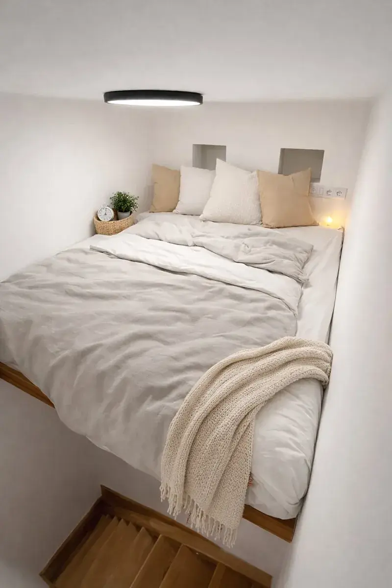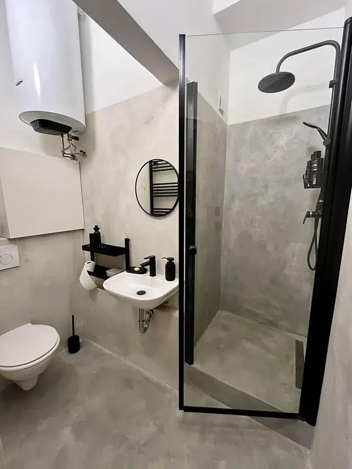 Byt se skládá z menší předsíně, koupelny se sprchovým koutem, toaletou a pračkou. K dispozici je kuchyňka a útulný obytný prostor se spacím patrem, který nabízí dostatek úložného místa. Byt je vkusně zařízený a připravený k nastěhování od 1.7.