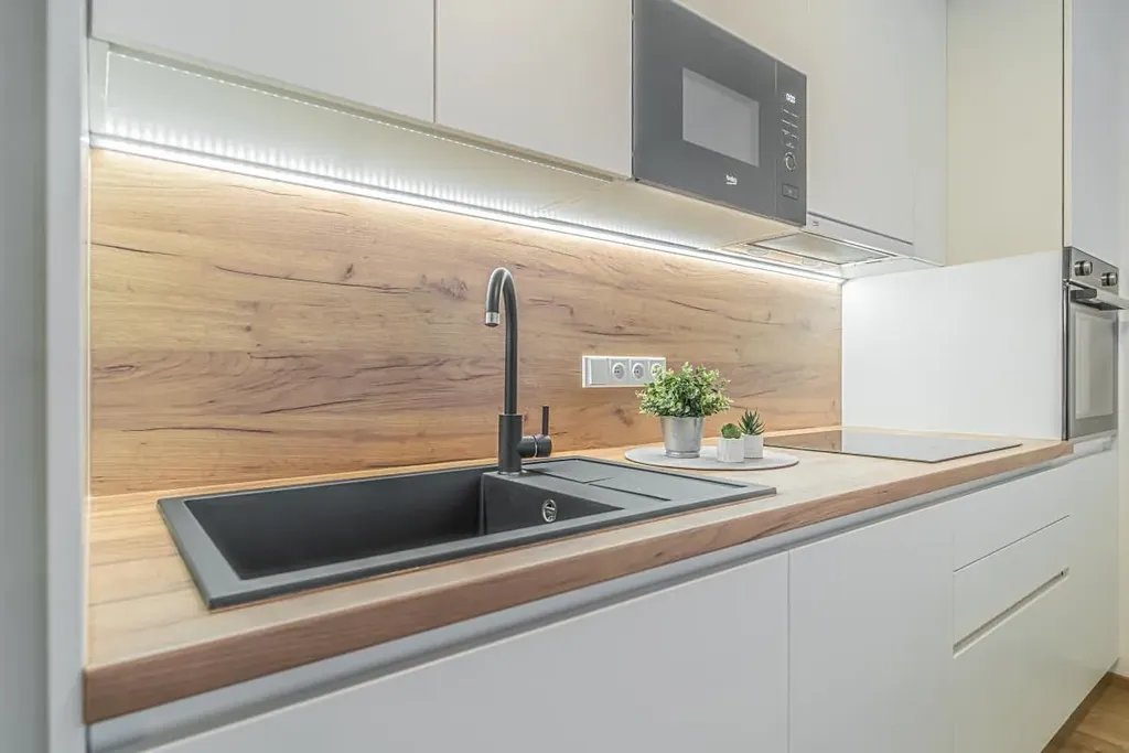 U vstupu do bytu se nachází předsíň s botníkem, šatní skříní s věšáky. Byt je vybaven vestavěnými skříněmi, kuchyňskou linkou s vestavěnými spotřebiči (mikrovlnná trouba, lednice, myčka, indukční varná deska, horkovzdušná trouba), jídelním stolem, židlemi. V ložnicích se nachází dvoulůžkové postele s matracemi, noční stolky, vestavěné šatní skříně, psací stoly, židle a komody. V bytě se nachází 1 koupelna, ve které je umístěná vana.