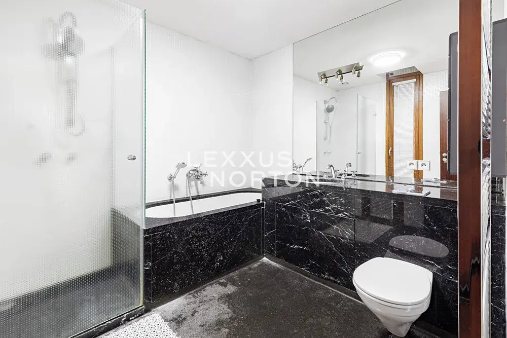 Samostatná kuchyně nabízí dostatek úložného prostoru a je plně vybavena spotřebiči – troubou, lednicí s mrazákem, sporákem, myčkou nádobí a mikrovlnnou troubou. Luxusní koupelny zaujmou elegantním mramorovým obkladem a jsou vybaveny vanou, sprchovým koutem i toaletou, což zajišťuje maximální komfort.