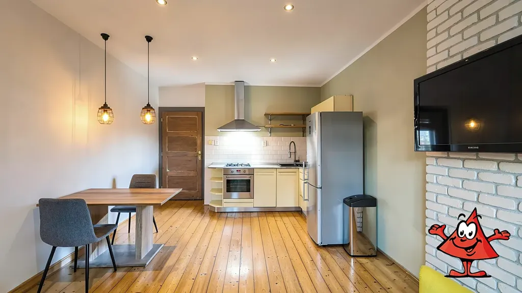 V obývacím pokoji plnohodnotná kuchyňská linka osazená sklokeramickou deskou, horkovzdušnou troubou, digestoří, myčkou a lednicí, dále jídelní stůl, konferenční stolek, sedačka a televize. V ložnici je dvoupostel a rozměrná šatní skříň. V obývacím pokoji podlaha dřevěná, v ložnici plovoucí, v předsíni PVC, v koupelně a na WC dlažba.