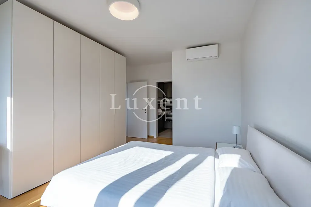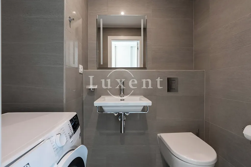 Nabízíme k pronájmu kompletně zařízený byt 2+kk s terasou o celkové užitné ploše 72 m2 ve 4. podlaží novostavby rezidenčního projektu s výtahem a množstvím nadstandardních doplňkových služeb jako je recepce, bazén, wellness a rozlehlá společná zahrada v uzavřeném vnitrobloku. Za příplatek lze pronajmout parkovací stání v podzemních garážích.