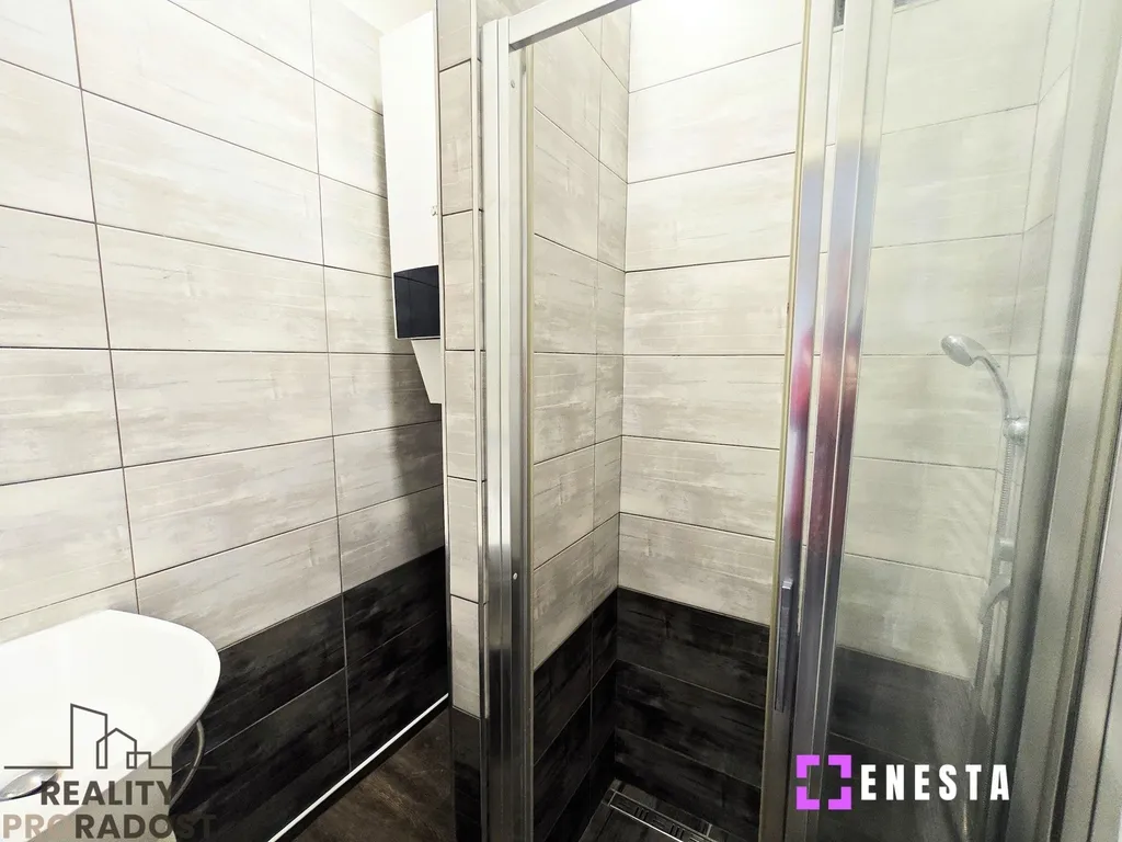 Samostatná kuchyně je vybavena moderní linkou se všemi potřebnými spotřebiči: lednicí s mrazákem, myčkou nádobí, elektrickou troubou a sklokeramickou varnou deskou. Koupelna disponuje sprchovým koutem, toaleta je umístěna samostatně.
