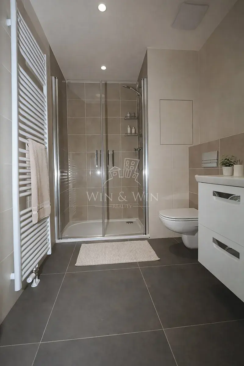 Bytová jednotka se nachází v 3. nadzemním podlaží a nabízí velmi příjemné a praktické dispoziční řešení. Velkým benefitem je velkorysá terasa o velikosti 13,2 m², ideální pro ranní kávu, večerní posezení nebo letní grilování.