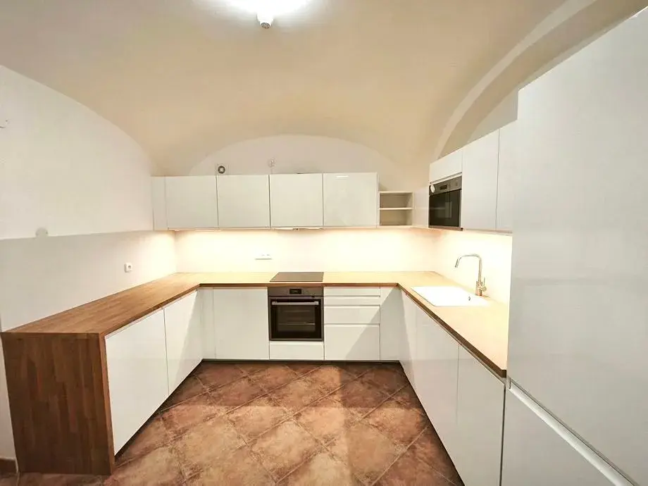 Nabízíme k pronájmu byt 2+1 po celkové rekonstrukci, nový, nebydlený, ve zvýšeném přízemí historického domu v prestižní lokalitě přímo pod Pražským hradem. Byt je vybaven novou kuchyňskou linkou s lednicí, myčkou a pračkou se sušičkou. Na podlaze jsou parkety a dlažba. Koupelna je s rohovou vanou a toaletou. Šatna. K dispozici je i prostorná společná místnost vedle bytu. Vhodné pro jednotlivce nebo pár. Kauce činí holé nájemné, provize též.