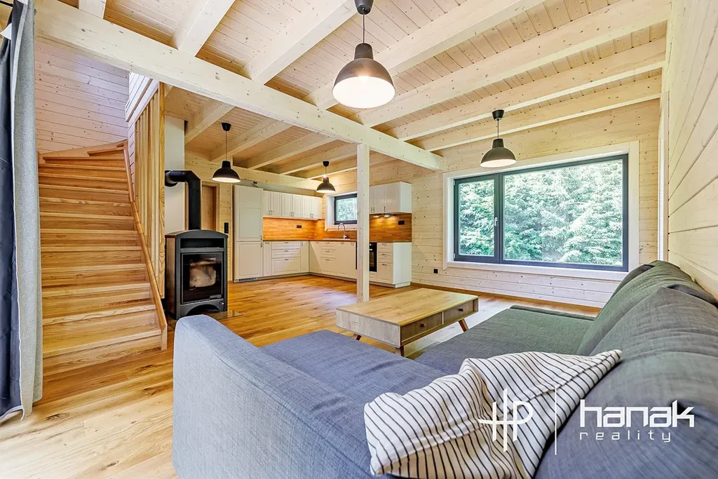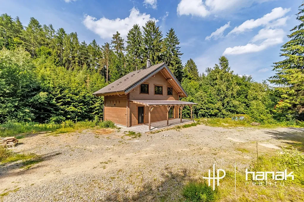 Vážení klienti, představujeme Vám krásnou dřevostavbu nízkoenergetické stavby rodinné rekreace s dispozicí 4+kk v klidném prostředí lesa nedaleko obce Líšnice.