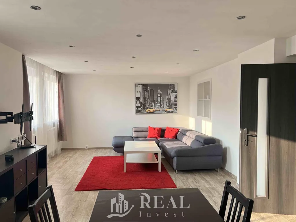 Dispozice bytu nabízí velký obývací pokoj s jídelním koutem, samostatnou ložnici, menší kuchyňský kout vhodný pro běžné vaření a koupelnu s vanou.