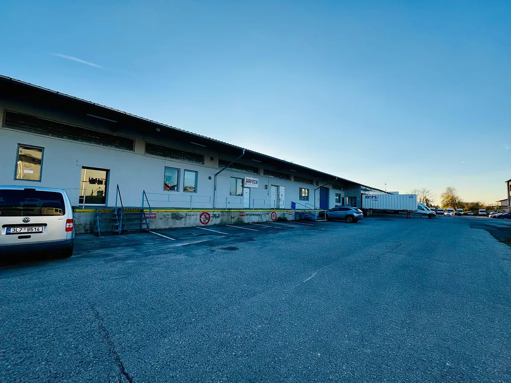 Průmyslová zóna – ul. Vrbenská, České Budějovice. Výborné napojení na městský okruh, regionální tahy a dálnici. V blízkosti zastávky MHD, služby a čerpací stanice. Příjezd bez omezení pro TIR.