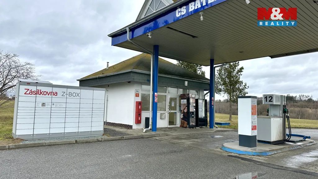 Výhodou je umístění přímo u čerpací stanice, které zajišťuje stálý pohyb zákazníků a skvělý potenciál pro gastro podnikání.