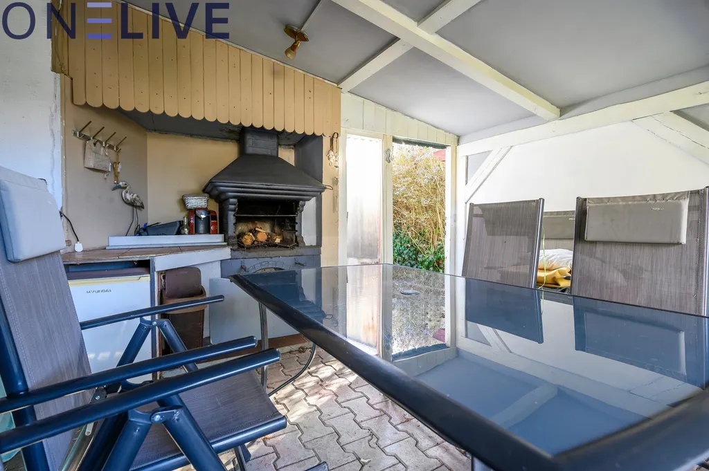 K domu náleží zahrada o velikosti 406 m² s bazénem, pergolou s krbem a venkovní kuchyní. Na zahradu je přístup z přední i zadní části pozemku.
