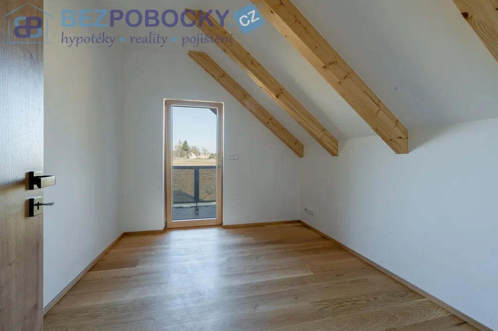 Podkroví – ložnice, pokoj, pracovní kout, koupelna s WC.
