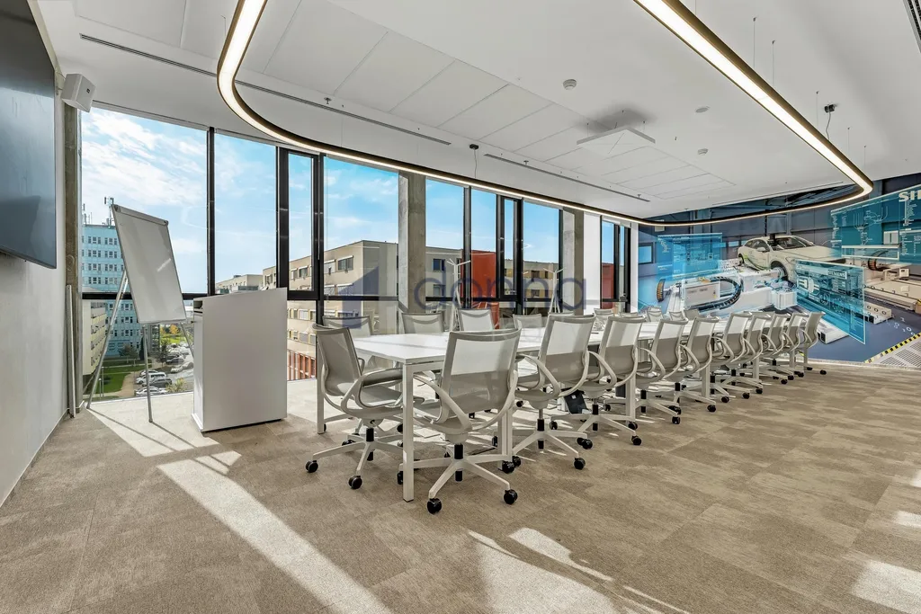 Prosklená budova ve tvaru písmene U s pěti nadzemními a dvěma podzemními podlažími. V budově nyní nabízíme k pronájmu kancelářské jednotky v 5.NP o rozloze od 250 m2 do 1365 m2. Díky efektivnímu půdorysu můžete využít stávající dispozice prostor, nebo si je flexibilně přizpůsobit svým představám. Aktuálně nabízené kanceláře jsou k dispozici ve velmi vysokém standardu včetně zdvojených podlah, LED osvětlení. Dominantou celého prostoru je atrium s bohatou zelení a vodním prvkem. K pracovnímu komfortu přispívá také jídelna přístupná všem nájemcům a kolárna.