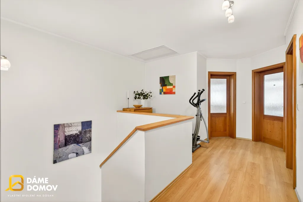 Dispozice domu je řešena jako 4+1 a nabízí komfortní bydlení pro rodinu. V každém patře se nachází koupelna, což výrazně zvyšuje komfort užívání domu. Jednotlivé místnosti jsou prostorné a prakticky uspořádané.