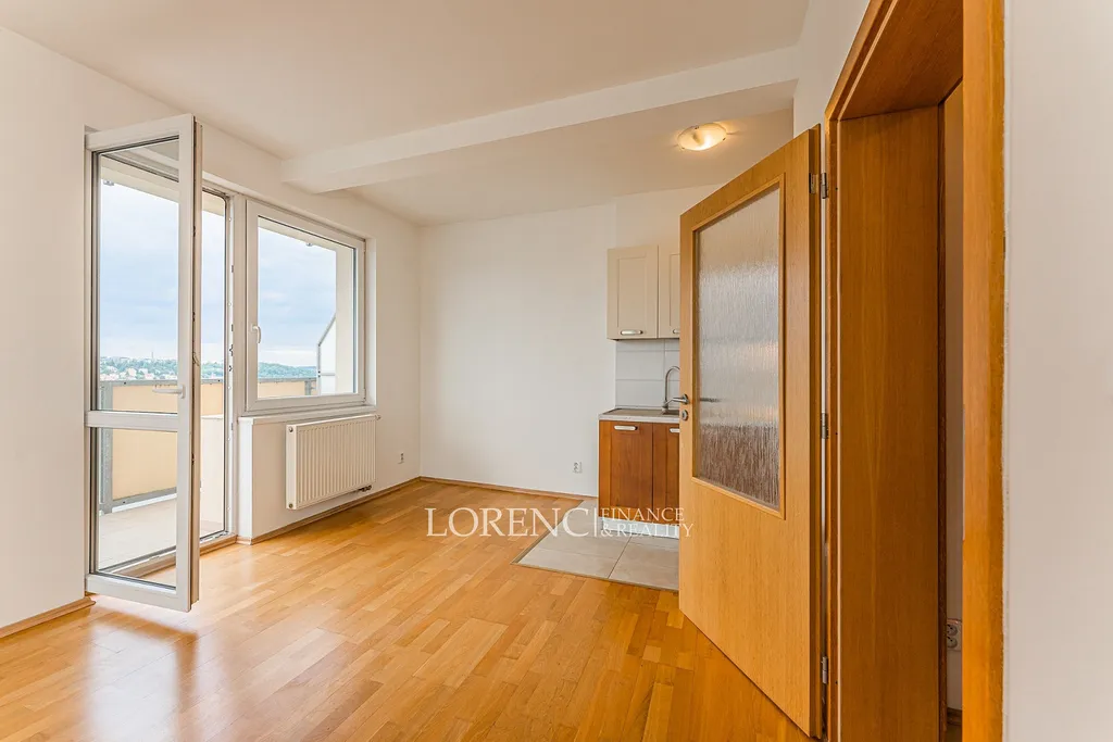 Pronájem krásného vzdušného a světlého bytu s balkonem i lodžií. Byt je umístěn v 5. patře bytového domu s výtahem. Dispozice bytu je 2kk s podlahovou plochou 55m², celková plocha je 63 m². K bytu náleží balkon (4 m²) s nádherným výhledem do údolí i na část Prahy- Košíře, případně lodžie (4 m²) s orientací na západ.