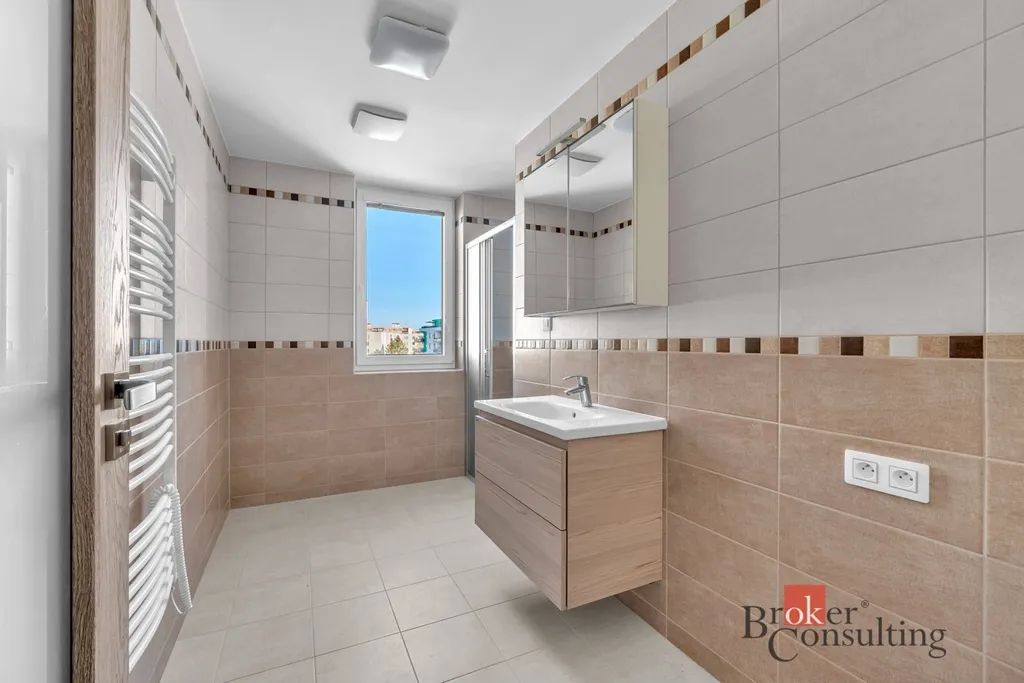 Součástí pronájmu je komora na stejném patře, ideální pro uložení věcí. V bytě je podlahové vytápění a pro uložení věcí je tu i prostorná skříň.