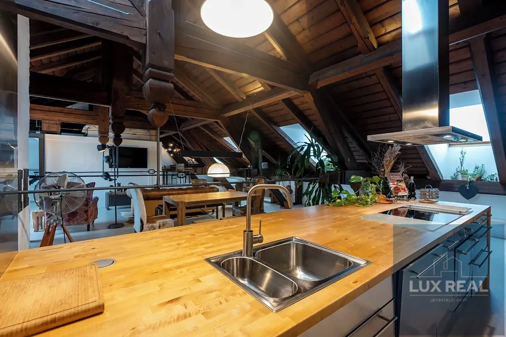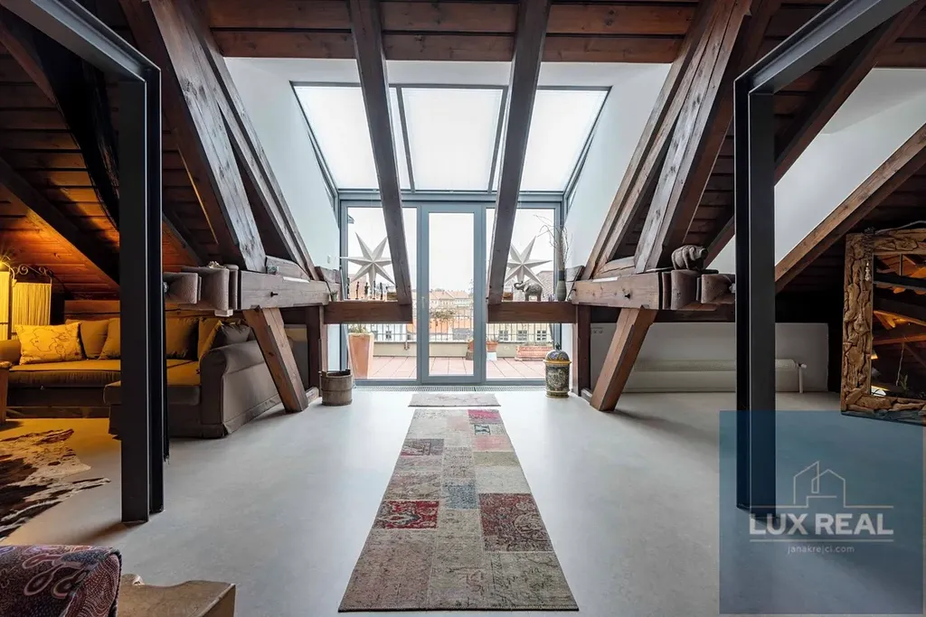 Penthouse má zvýšené stropy , které vytvářejí vzdušný a unikátní prostor, ale zároveň je možné tento prostor dle potřeb rozdělit i na více místností.