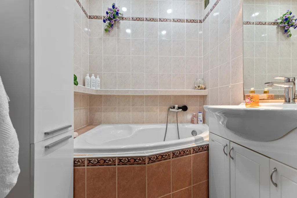 Samostatná plně vybavená kuchyně poskytuje dostatek místa pro vaření i stolování. Byt dále nabízí zrekonstruovanou koupelnu s vanou a samostatnou toaletu.