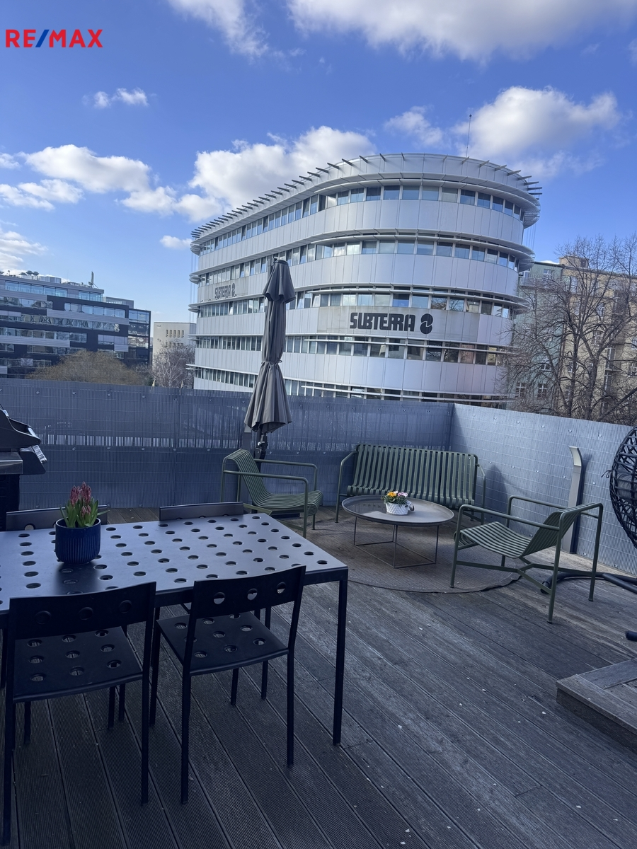 Exkluzivně Vám nabízíme k prodeji byt v domě z roku 2021 o dispozici 4+KK , velkou terasou , sklepem a 2 parkovacími stáními u stanice metra Palmovka.