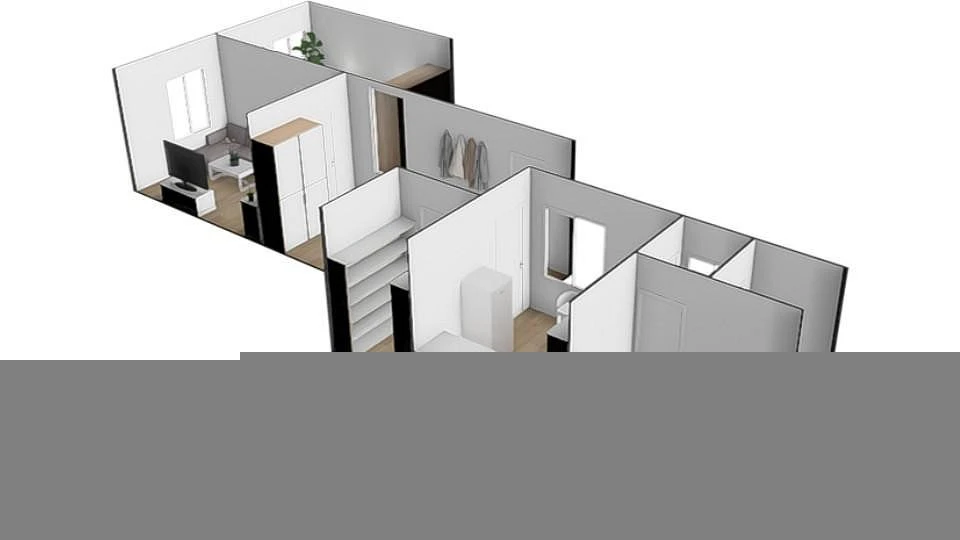 Druhý pokoj o velikosti cca 25 m and sup2; je vybaven pokojovou stěnou.