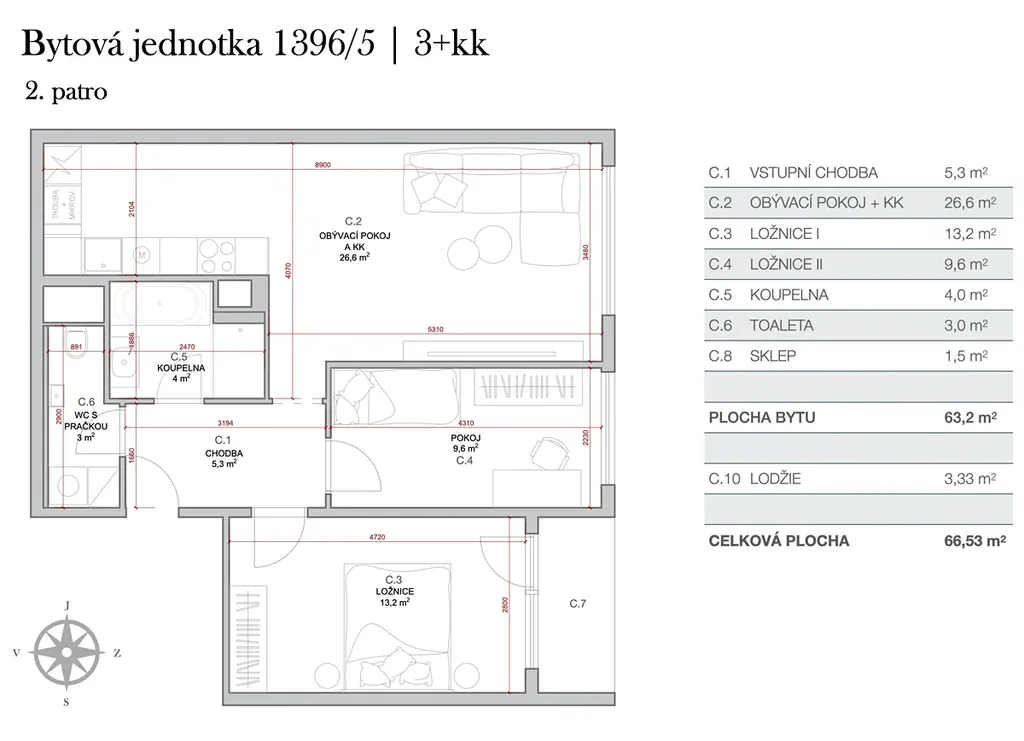 Dispozice bytu 3+kk: