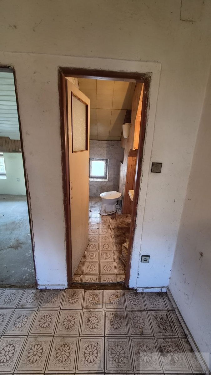 V exkluzivním zastoupení majitele nabízíme k prodeji nepodsklepený samostatně stojící rodinný dům bez č. p. / č. ev., s jedním nadzemním podlažím a obytným podkrovím, s jednou bytovou jednotkou o dispozici 5+1, situovaný v zástavbě rodinných domů v obci Meclov - část Němčice, s přístupem ze zpevněné komunikace p. č. 919 a po částečně zpevněné komunikaci p. č. 876/1. Pozemek je rovinný, rodinný dům je napojen na elektro přípojku a vlastní studnu, odkanalizování je provedeno do jímky. Dopravní dostupnost je zajišťována autobusovými spoji, Němčice leží ve vzdálenosti cca 2,5 km od silnice I. třídy č. I/26 ve směru na hraniční přechod Folmava - Plzeň. Základní obchodní síť a síť služeb (základní a střední školy, městský, stavební a finanční úřad, banky, čerpací stanice PHM, market, sportovní areál, zdravotní středisko a nabídky pracovních příležitostí) jsou v obci s rozšířenou působností - Horšovský Týn ve vzdálenosti cca 4,5 km, nejbližší nemocnice, kompletní obchodní síť služeb jsou v bývalém okresním městě Domažlice ve vzdálenosti cca 7 km. Technický popis: základové pasy jsou kamenné a betonové, svislé nosné konstrukce zděné z cihelného a smíšeného zdiva, střecha sedlová, krytina z vlnitého eternitu, okna dřevěná špaletová, vytápění ústřední s kotlem na tuhá paliva. Dispoziční řešení: 1. NP - zádveří, chodba, schodiště do podkroví, pokoj, kuchyň, koupelna + toaleta, chodba, sklad, spíž, garáž. Podkroví - hala, chodba, toaleta, půda. Stáří rodinného domu je cca 100 let a cca 10 let nevyužívaný k trvalému bydlení. Zastavěná plocha a nádvoří: 373 m2, ostatní plocha: 178 m2, pozemků celkem: 551 m2.