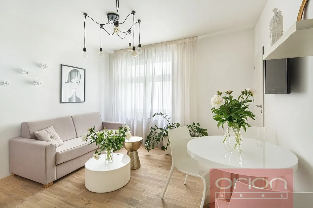 Nabízíme k pronájmu plně zařízený byt 2+kk o rozloze 50 m² v 5. patře zrekonstruovaného secesního domu bez výtahu v Praze 5 - Smíchově. Byt se skládá z prostorného obývacího pokoje s plně vybavenou kuchyní a jídelním stolem, samostatné ložnice, koupelny se sprchovým koutem a samostatné toalety. Byt má vysoké stropy a úložné prostory na míru.