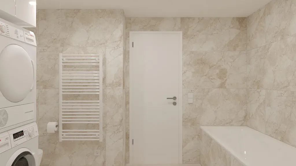 Byt je navržen v moderním standardu s důrazem na komfort a energetickou úspornost. Součástí vybavení jsou dřevěné podlahy, izolační trojskla a systém rekuperace, který zajišťuje zdravé a úsporné větrání s minimálními tepelnými ztrátami.