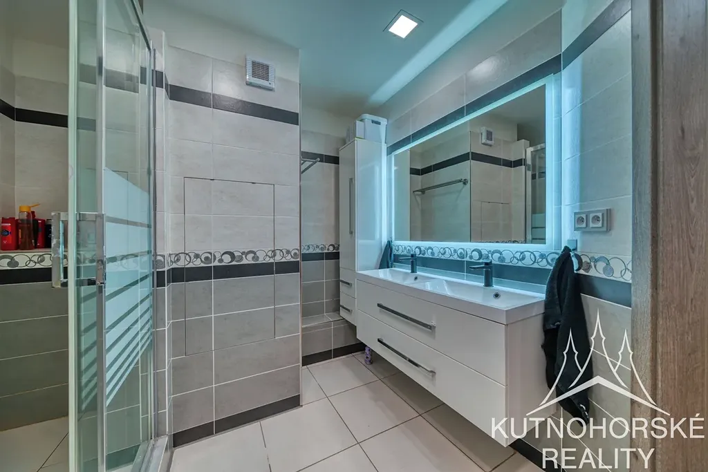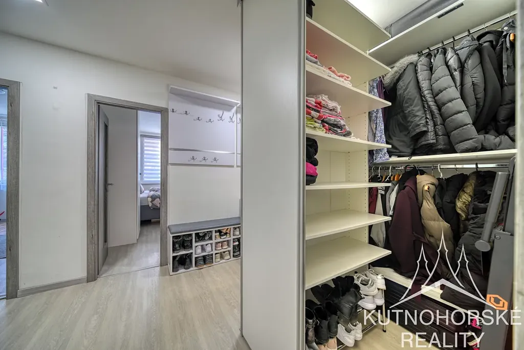 Byt nabízí dostatek úložných prostor. V chodbě se nachází prostorná šatna, další úložné prostory jsou také v ložnici. Koupelna je prostorná a nabízí místo pro pračku i sušičku, velký sprchový kout a umyvadlo se zrcadlem. Toaleta je samostatná.