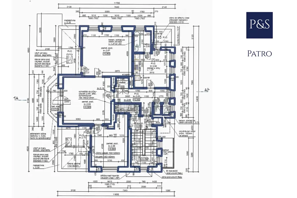 • Užitná plocha: 406,92 m² (suterén 94,74 m², přízemí 147,91 m², patro 133,17 m², podkroví 93,60 m²)