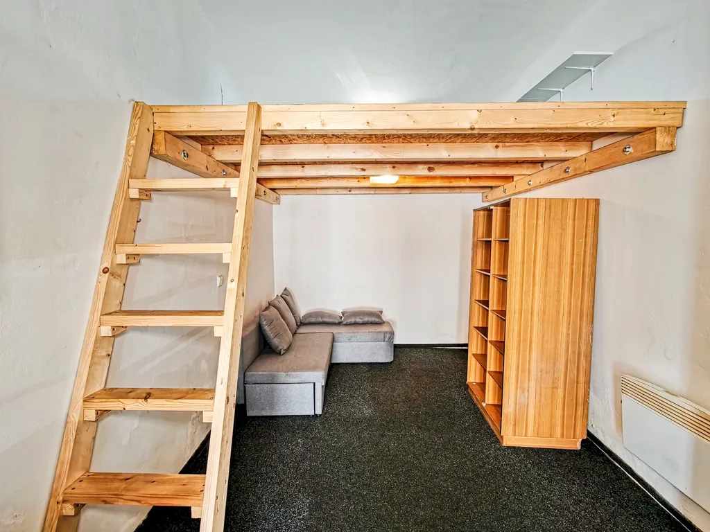 Nabízíme k pronájmu samostatný, plně vybavený prostor v areálu v širším centru Pardubic, ulice Jana Palacha. Hlavní obytná část má výměru 18,64 m² a díky vysokému stropu cca 3,3 m je doplněna prakticky řešenou galerií na spaní o ploše 8,12 m², která uvolňuje hlavní část prostoru pro běžné denní fungování.