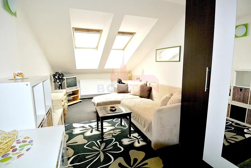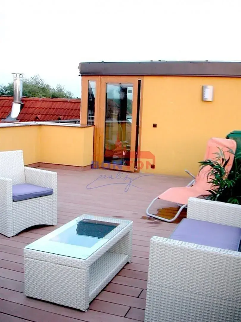 Ve výhradním zastoupení nabízíme slušné česky či slovensky mluvící nekuřačce pronájem zařízeného neprůchozího atypického podkrovního pokoje o ploše 20 m2 v cihlovém mezonetovém bytě 4+1 s vlastním vchodem v zástavbě nových rodinných domů v Praze 4 Šeberov. Pokoj je kompletně vybavený. Součástí pronájmu je využívání koupelny s WC, umyvadlem, sprchovým koutem a automatickou pračkou, sdílené s dalšími dvěma nájemnicemi, a prostorné společné kuchyně s kompletně vybavenou moderní kuchyňskou linkou (vlastní úložné prostory, myčka, lednička, sklokeramická deska, el. trouba, digestoř, skříňky, stůl a 4 židle), případně i dalšího WC s umývátkem v přízemí. K dispozici je i využívání střešní terasy 32 m2. Ústřední vytápění plynovým kotlem, možnost připojení k internetu, parkování v ulici nebo za poplatek na soukromém parkovišti za pojezdovou branou. Příjemné prostředí s výbornou občanskou vybaveností a dopravní dostupností (1 stanice autobusem na metro C Opatov) v žádané klidné lokalitě poblíž přírodní rezervace hrnčířských luk a rybníků. Měsíční nájemné včetně poplatků a připojení k internetu činí 12.000,- Kč, provize RK od nájemce 12.000,- Kč. Pouze pro jednu osobu a bez zvířat. Volné od 1.6.2026. Kontaktujte mě, prosím, e-mailem, děkuji. Bližší informace u makléře.