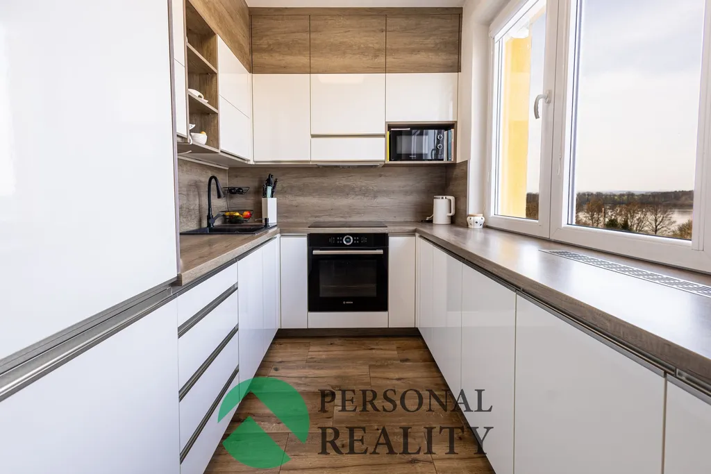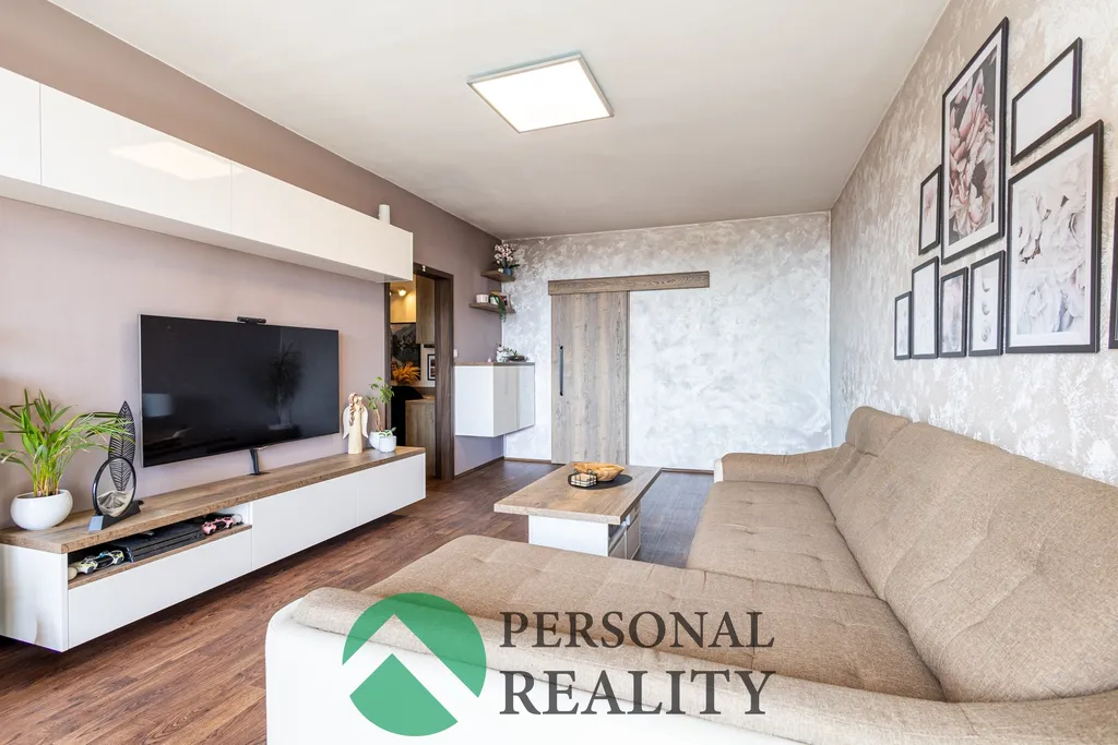 Prodej prostorného bytu o dispozici 3+1 s pracovnou a lodžií a s krásným výhledem v klidné části města Zliv, ulice Školní.
