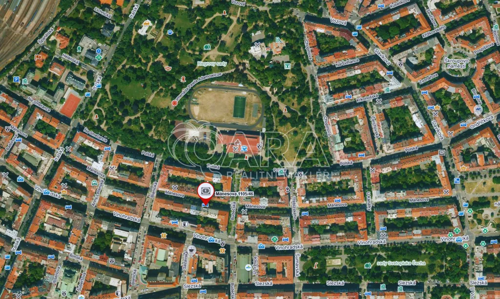 2) TOP lokalita: Mánesova ulice – jen pár kroků od Riegrových sadů a náměstí Jiřího z Poděbrad. Adresa, která neztrácí na hodnotě.