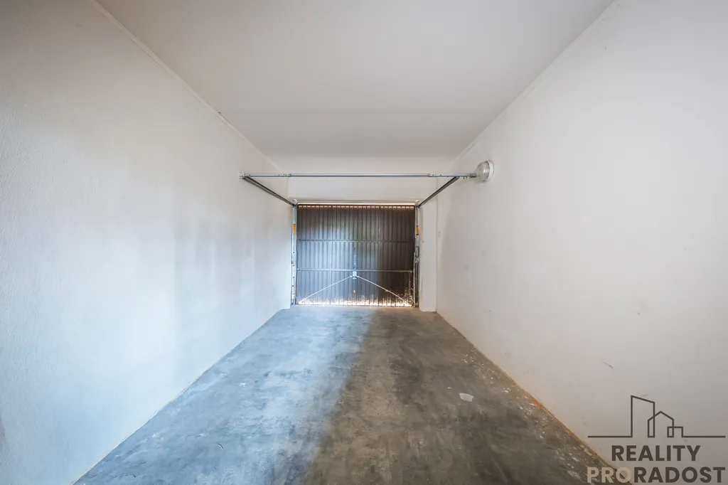 Garáž je umístěná v suterénu bytového domu, který v současné době prochází rekonstrukci ( zateplení budovy, nová fasáda, střecha, atd….), je samostatně přístupná, má betonovou podlahu, plechové vrata, disponuje přípravou na připojení samostatného elektroměru a je ve velmi dobrém stavu.