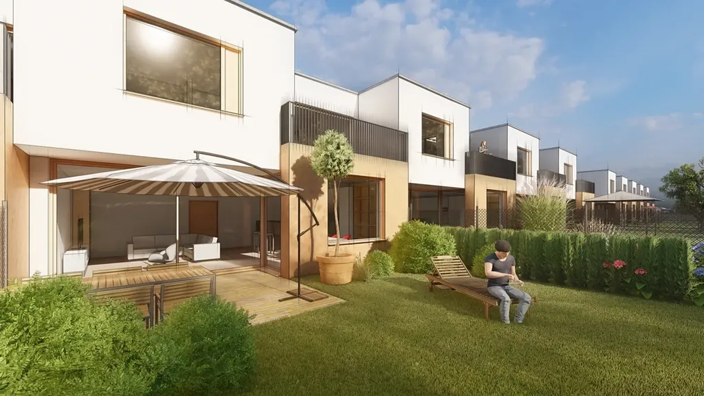 Novostavba rodinného domu 5+kk na prodej v Mladé Boleslavi. Je součástí moderního ekologického projektu ECO Village Podchlumí. Celkem 38 nízkoenergetických rodinných domů poskytuje jedinečný komfort moderního bydlení v harmonii s okolní krajinou venkova, přesto kousek od městské vybavenosti. Dispozice 4+kk a 5+kk, ceny od 11 566 915 Kč. Dům je navržen s ohledem na udržitelnost šetřící nejen přírodu, ale i vaší peněženku, ať už jde o použití přírodních materiálů či energetickou efektivitu. Velká okna poskytují dostatek přirozeného světla a zahrady s terasami umožňují přímý kontakt s okolní zelení. Nechybí ani garážové a venkovní parkovací stání. Interiér prvního podlaží tvoří prostorný obývací pokoj s přístupem do zahrady, kuchyňským koutem a jídelním prostorem, ložnice s walk-in šatníkem, vstupní hala propojená s garáží pro jeden vůz, chodba, koupelna se sprchovým koutem a toaletou, technická místnost a schodiště. Ve druhém patře se nachází dvě ložnice s walk-in šatníky, pracovna s přístupem na částečně zelenou střešní terasu, koupelna s vanou a sprchovým koutem, samostatná toaleta prádelna a chodba. Standardy zahrnují dřevěné podlahy a schodiště, keramické obklady a podlahy v koupelnách, kuchyni a vstupní hale, velkoformátová okna s izolačními trojskly, podlahové vytápění s možností chlazení, rekuperaci vzduchu, využití tepelného čerpadla, elektricky ovládané žaluzie, rychlý internet, dálkově ovládané brány a branky pro vstup na pozemek, příprava pro instalaci fotovoltaických panelů a možnost elektronického zabezpečení domu. Možnost klientských změn. Výborná dostupnost, 5 minut chůze na zastávku MHD, 10 minut k Městskému bazénu, koupališti, cykloparku Štěpánka či Klinice Dr. Pírka. Školy, historické centrum, nákupní centra Bondy a Olympia či výjezd na dálnici D10 pouhých 5 minut jízdy. Mladá Boleslav navíc nabízí Vysokou školu Škoda Auto, malebné kavárny a hospůdky, řadu sportovišť, restaurace světových kuchyní či populární lokální pivovar eMBe. Praha za rohem, 30 minut na Černý Most či do Letňan s nákupními centry a stanicemi metra, za hodinu na Václavském náměstí. Mladá Boleslav je navíc součástí příměstské pražské hromadné dopravy. Dům je dokončen a připraven k nastěhování. Pro kompletní informace o projektu nás neváhejte kontaktovat nebo navštivte webovou stránku ecovillagepodchlumi.