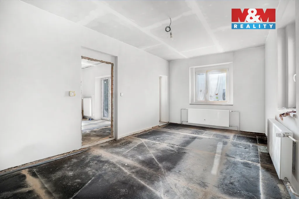 V domě již započala rekonstrukce – byla částečně provedena nová elektroinstalace, rozvody vody v plastu, instalovány nové radiátory v patře a nové štuky. Vytápění zajišťuje zánovní plynový kotel se zásobníkem na ohřev vody.