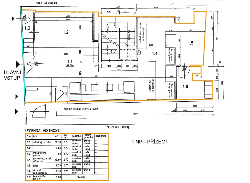 Odtud se prochází vnitřním schodištěm do 1.patra a také do suterénu.