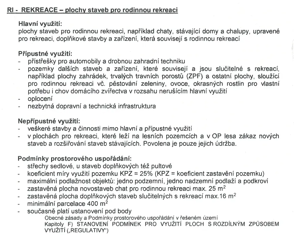 Nabízíme k prodeji rekreační pozemek o celkové výměře 873 m² v obci Ledce, okres Kladno. Pozemek se nachází na klidném a příjemném místě, v blízkosti přírody, přímo vedle dětského hřiště. Na pozemku je možné postavit rekreační chatu o zastavěné ploše do 25 m², zastavěná plocha doplňkových staveb slučitelných s rekreací max. 16 m2, s možností podsklepení a maximální výškou stavby 5 m, což umožňuje vybudování podkroví. Elektřina je již na pozemek zavedena a k dispozici je také projekt na studnu. Součástí pozemku je plechová garáž s novou střechou, kterou lze využít jako zázemí pro zahradu, nebo jako zařízení staveniště při výstavbě.
