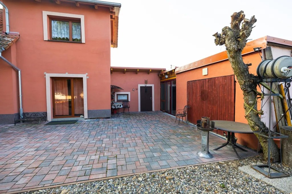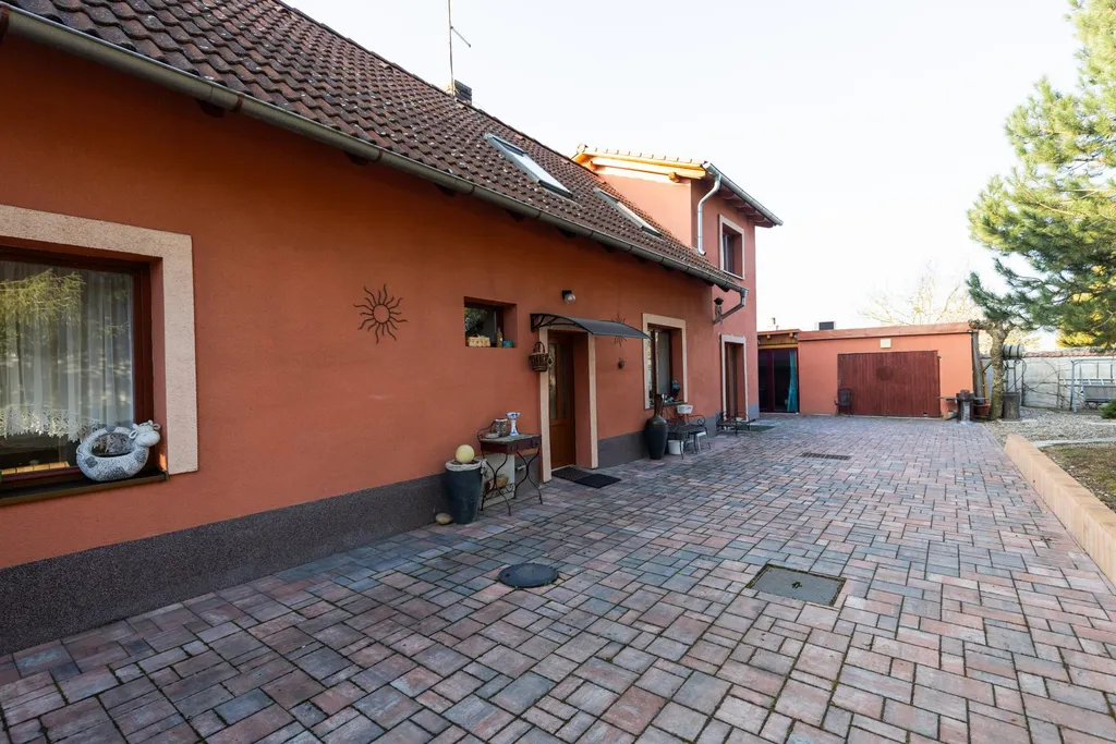 Dům se nachází na okraji obce a nabízí dostatek klidu a soukromí. Součástí nemovitosti je uzavřený dvůr, přístavba s pergolou a také garáž. Dvůr nabízí ideální prostor pro relaxaci, rodinné oslavy či grilování.