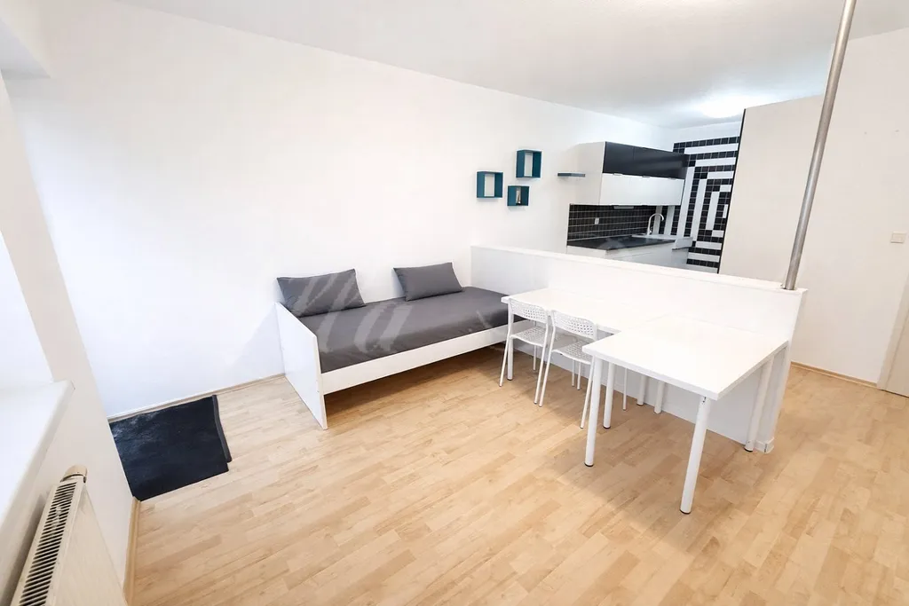 Zařízení: moderní kuchyňská linka s vestavěnými spotřebiči: lednice, trouba, mikrovlna trouba, myčka nádobí, varna deska digestoř, pračka, 4 lůžka, šatní skříně, pracovní stůl, židle, na chodbě šatní skříně, botník. Nábytek, který je na fotkách muže zůstat, nebo lze vystěhovat. V koupelně vana, a WC, pračka. Do bytu je zavedený internet není v ceně nájmu. Na podlaze dlažba a plovoucí podlaha, plastová okna, žaluzie. V přízemí společná kočárkárna. Možnost parkovaní před domem. Dostupnost MHD: Autobus 511.  K dispozici ihned
