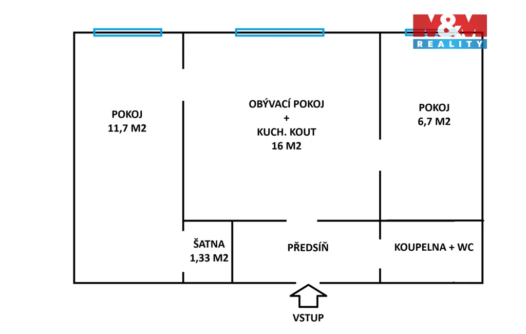 Byt o původní dispozici 2+1, upravený na praktické 3+kk, se nachází ve 2. nadzemním podlaží ze 4 v udržovaném panelovém domě po revitalizaci. Dispozice je velmi praktická – obývací pokoj je propojen s kuchyňským koutem, byt dále nabízí dva samostatné pokoje, z nichž jeden disponuje vlastní šatnou.