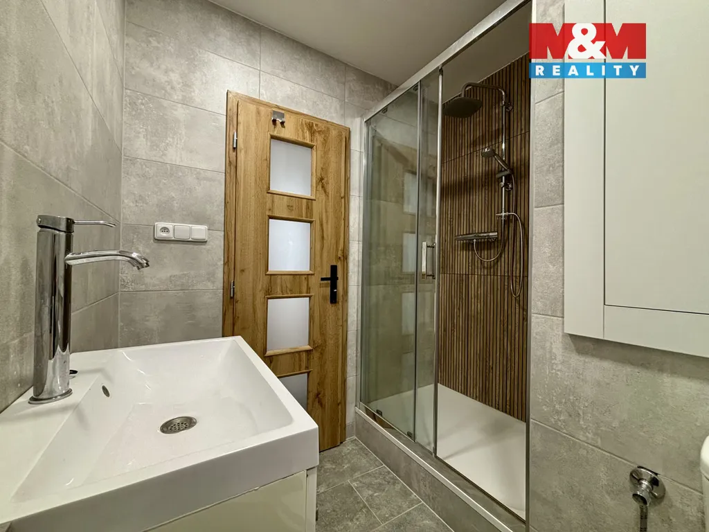 Součástí bytu je moderní koupelna s prostorným sprchovým koutem a toaletou. V předsíni se nachází velká vestavěná skříň poskytující dostatek úložného prostoru. V bytě byla provedena nová elektroinstalace včetně revize a také rozvody vody a odpadů jsou již v plastu.