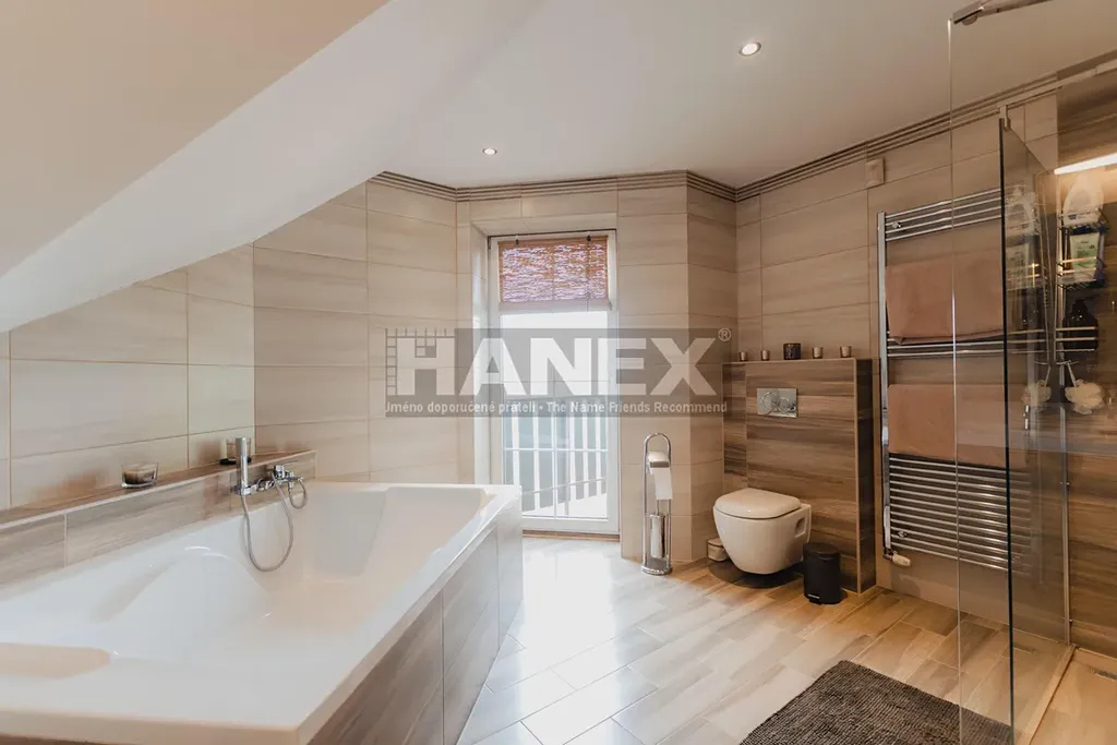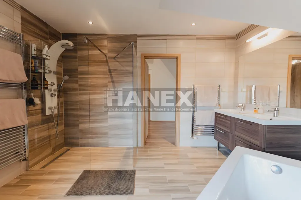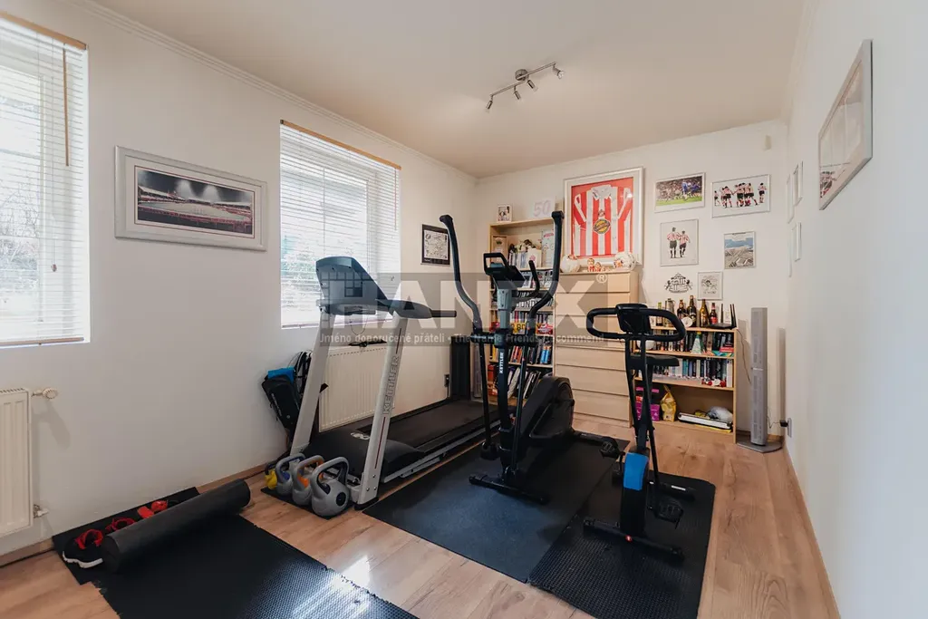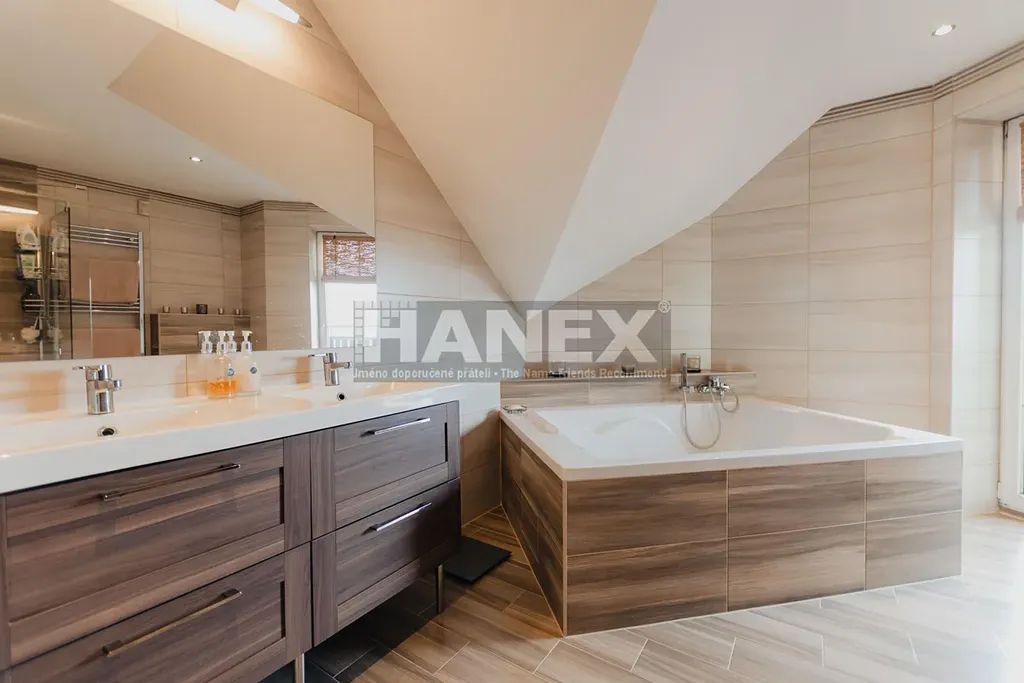 Stylový rodinný dům se 4 ložnicemi, rozlehlou zahradou a terasami v bezpečném uzavřeném areálu, jen pár minut jízdy od Prahy. Komplex vybudovaný v roce 1997 se skládá ze 4 domů a je přístupný po soukromé komunikaci. Společný bazén a tenisový kurt představují skvělou přidanou hodnotu této klidné lokality.