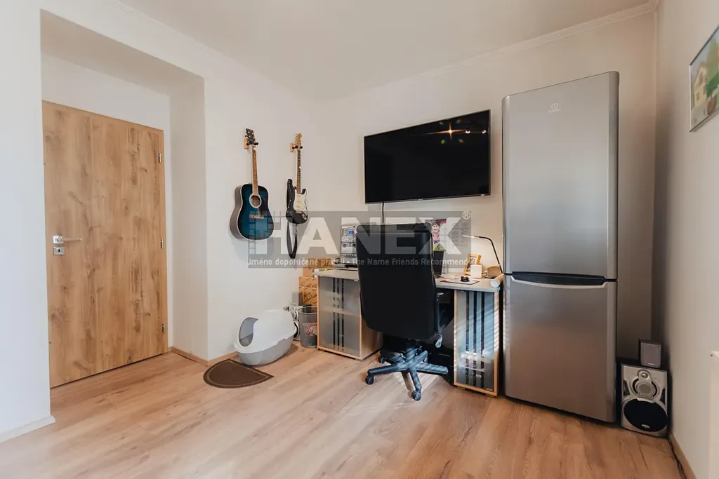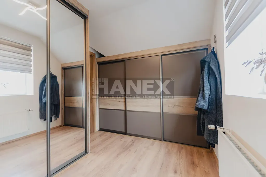 Patro po schodišti vstoupíme na centrální galerii, ze které je vstup do všech místností. Zde je menší pokoj, který je aktuálně využíván jako šatna s vestavěnými úložnými prostory; v případě potřeby jej lze využít například jako dětský pokoj.