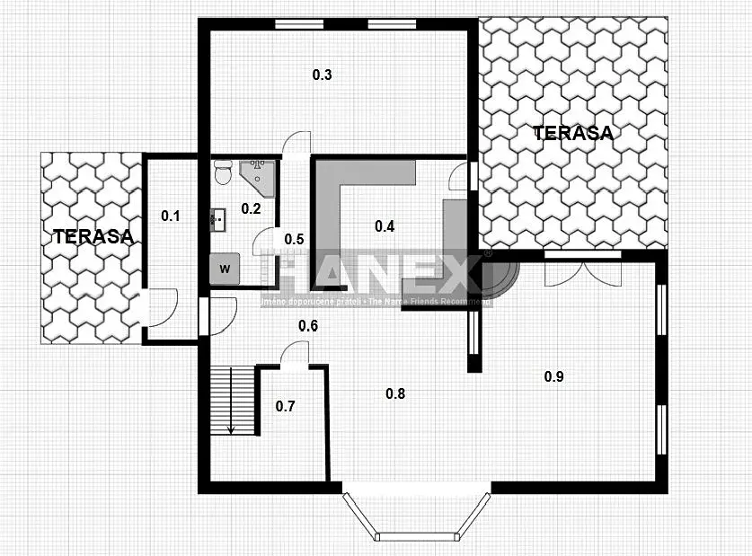 Součástí prodeje je také podíl na společných pozemcích, které umožňují přístup k tenisovému kurtu a bazénu.