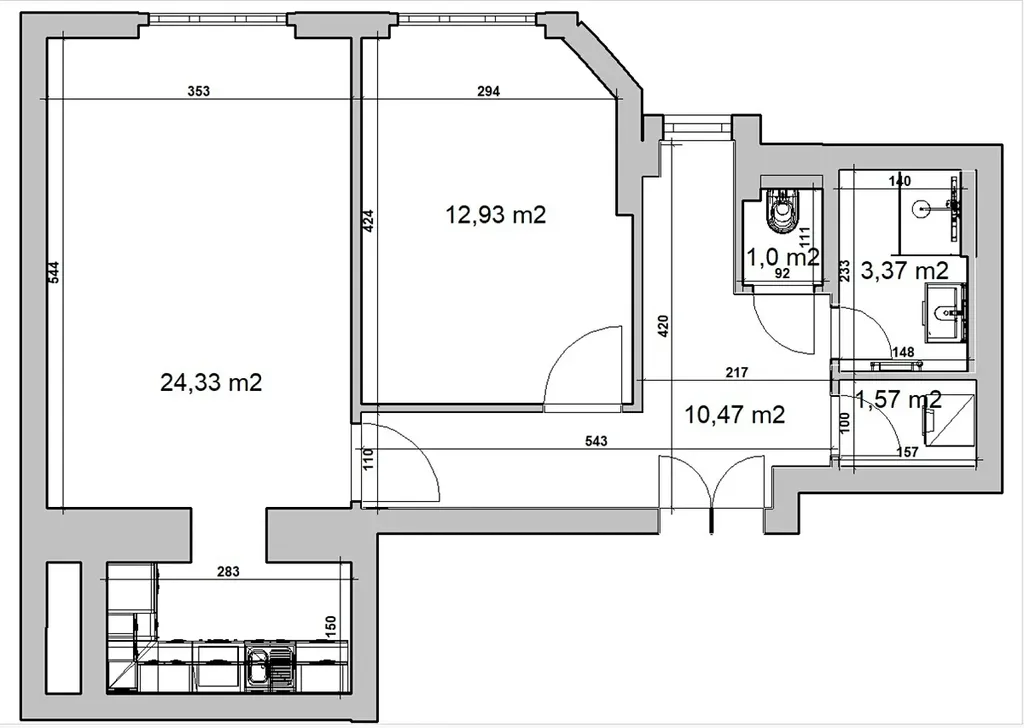 Ložnice orientovaná do klidného vnitrobloku. Obývací pokoj s odděleným kuchyňským koutem.