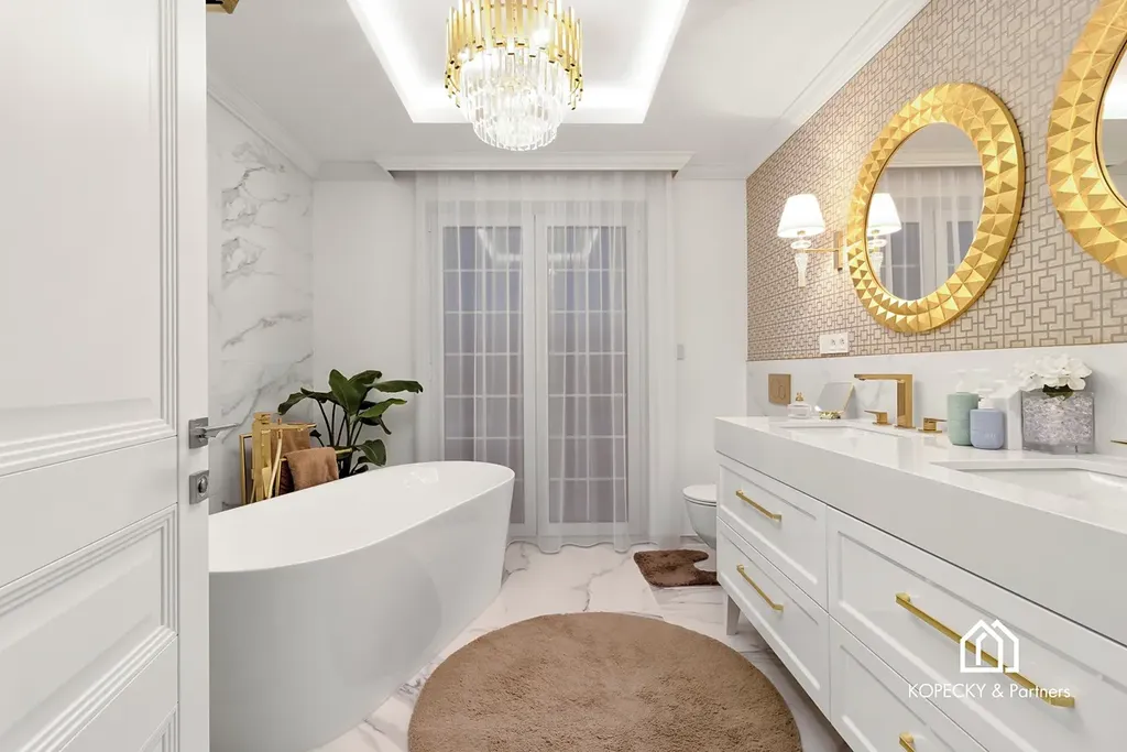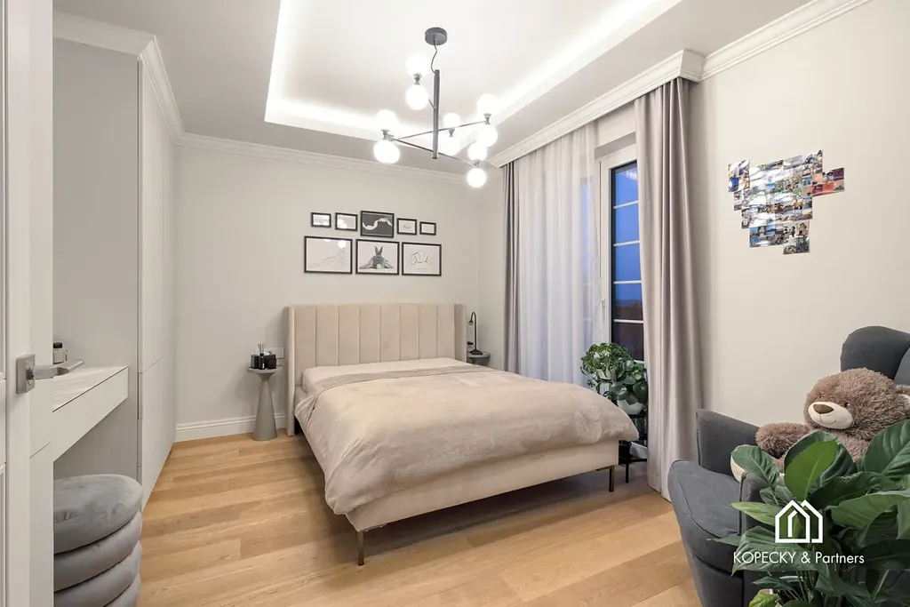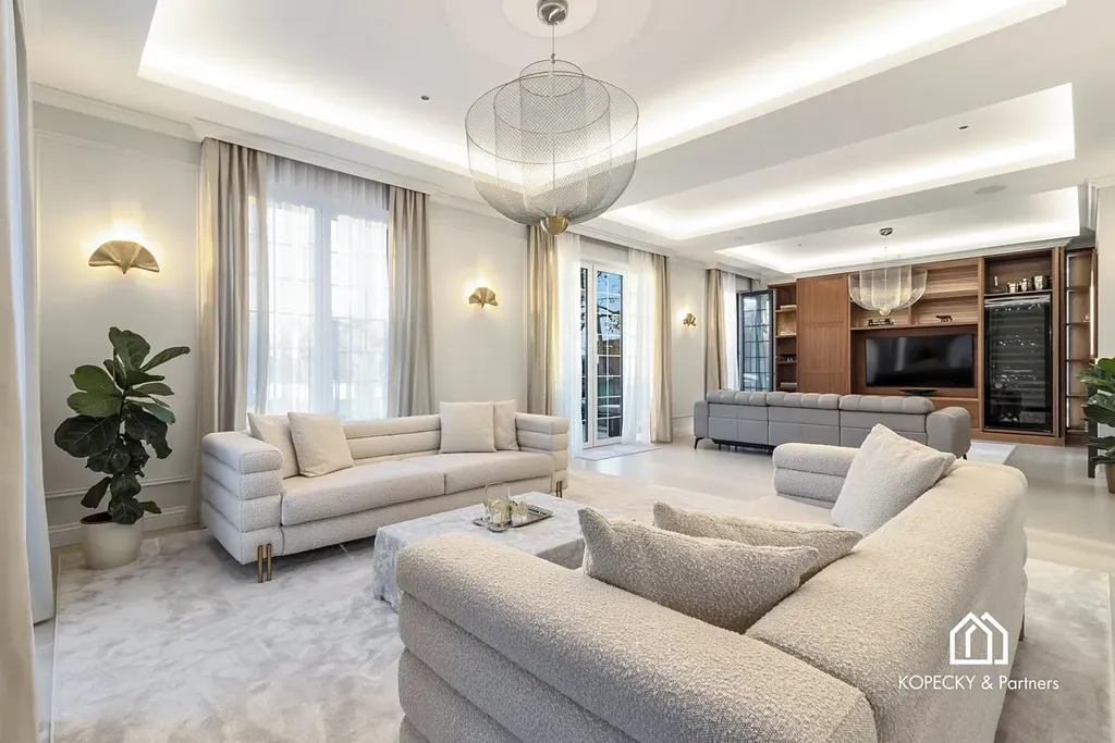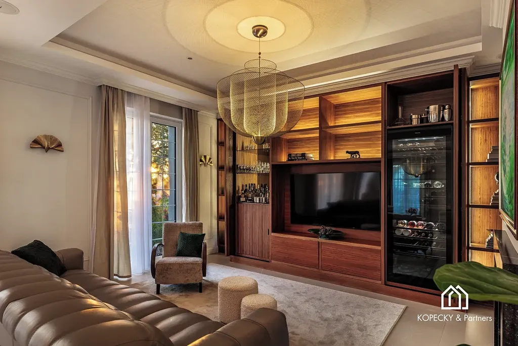 Součástí kupní ceny je nadstandardní interiérové vybavení laděné do stylu art deco, včetně designového nábytku a svítidel od renomovaných značek. Dům je díky tomu připraven k okamžitému užívání bez nutnosti dalších investic do vybavení.